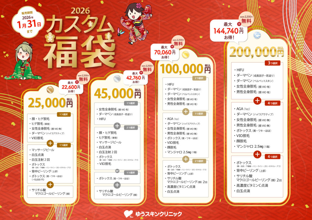 ゆうスキンクリニックにて、オリジナル『カスタム福袋』を発売いたします!